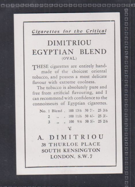 Cigarette card, A Dimitriou Egyptian Blend, Advertisement card depicting Egyptian Beauty (vg)