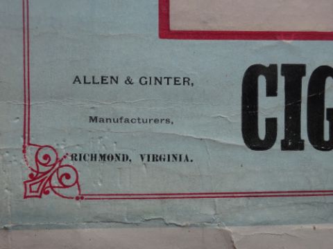 USA Tobacco Advert, Allen & Ginter Virginia Brights, Beauty subject 43.5 x 28.1cm approx. (Front has been restuck on to a canvas paper backing otherwise creasing around the edges)