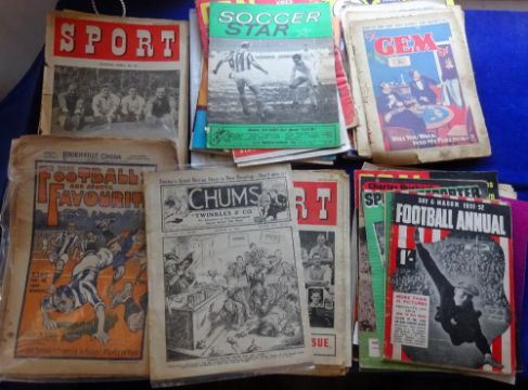 Collection of mainly football and other magazines and journals, including Chums 1915 issue, Football & sports favourites x 4 , Varoius Gen from 1937, Charlie Buchans Football, Sport Weekly etc ( varying condition )