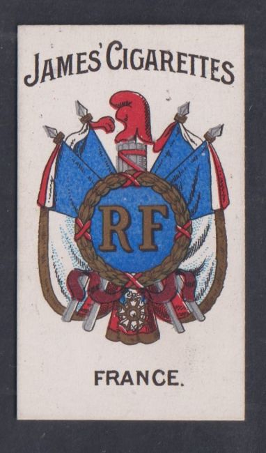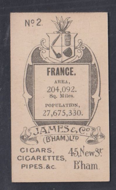 Cigarette card, James & Co Birmingham, Arms of Countries, type card, number 2 France (gd)