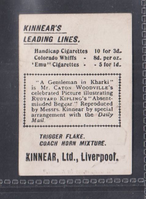 Cigarette card, Kinnear, A Gentleman in Kharki, single card issue (about gd)