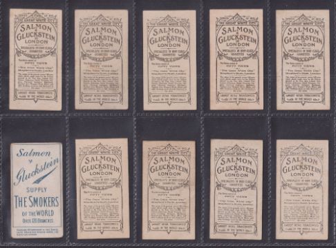 Cigarette cards, 30 scarcer type cards from various series including Salmon & Gluckstein (10, including 9 x Great White City), Taddy (17, including 8 x Royalty 5 x Famous Actresses, Klondyke Series, Natives of the World etc), Hill Fragments from France, Baker Actress BLARM, HC Lloyd Academy Gems (mixed condition mainly fair, a few near gd)