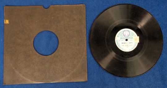 Rangers v Celtic, a 78 rpm record by Sammy Shields (Comedian) on the Beltona Record Label, 'Rangers v Celtic on one side and on reverse 'A.B.C. of Football' issued in 1923 in black card sleeve (some slight scratches on record otherwise gen gd). From the Phil Martin Collection.