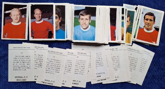 Trade cards, Football, FKS 2 albums completed with cards stuck in, Soccer Stars England First Division 1968-69 (inner pages detached from cover) plus England First Division 1969-70 (wear to cover on both, inner pages generally reasonable condition). Both albums contain George Best. Sold with approximately 120 loose cards including Denis Law, Bobby Charlton, Emlyn Hughes etc (loose cards gen gd/vg)