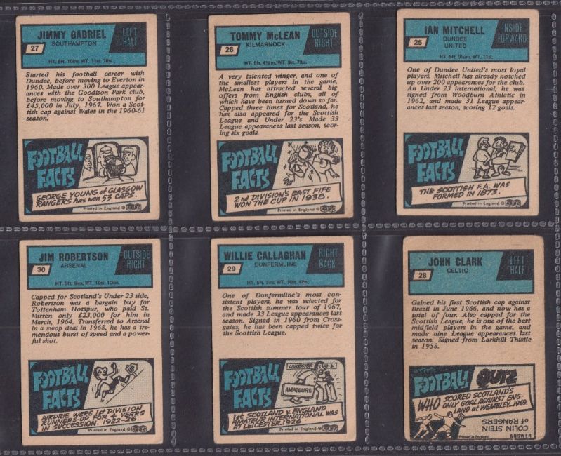 Trade cards, A&BC Gum (Football Facts, Scottish) 1969 Blue backs 1st Series (set 42 cards, 1 to 41 and un numbered checklist) (checklist marked, other cards gen gd some fair)