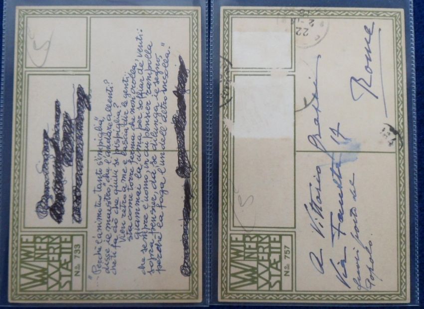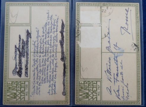 Postcards, Glamour, 2 scarce glamour cards published by Wiener Werkstatte, nos. 757 and 733, illustrated by Susi Singer, both in unusual costume (no. 757 with stamps removed and a little wtf, no. 733 with part of message on reverse scribbled out o/w mainly gd)