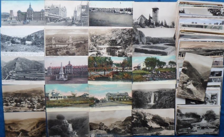 Postcards, South Africa, a collection of approx. 147 cards, with many street scenes, towns and cities, also good ethnic, costume, Ways of Life, mining (South Randfontein Goldmine), transport, Johannesburg station interior, glamorous ladies, a few British East Africa and Rhodesia, snake park, major buildings, Chinese compound on the Rand etc. Viewing essential (mainly gd)