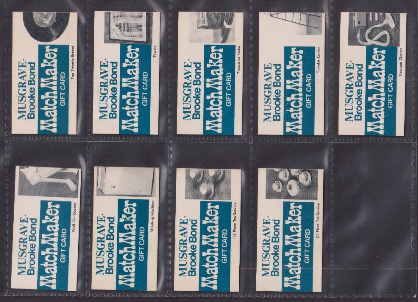 Trade cards, Musgrave-Brooke Bond, Matchmaker Gift Cards, fronts in blue, 39 different cards (gd/vg)