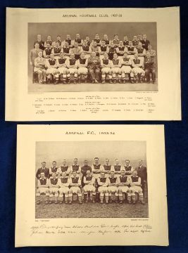 Arsenal FC, two large sepia squad photo's both issued as Supplements from the News Chronicle, one for 1933/34 with facsimile signature legend, the other for 1937/38 with printed legend (both with some sl creasing but gen gd). From the Phil Martin Collection.