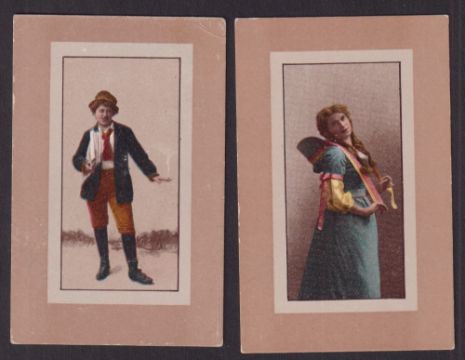 Cigarette cards, USA, L. Miller & Sons, Actresses & Beauties, 'THIBS', 'X' size, two type cards, ref N538, picture no 26 ('Havana Blossom' back) and picture no 93 ('Old Pepper Cut Plug' back, one small corner crease) (gd) (2)