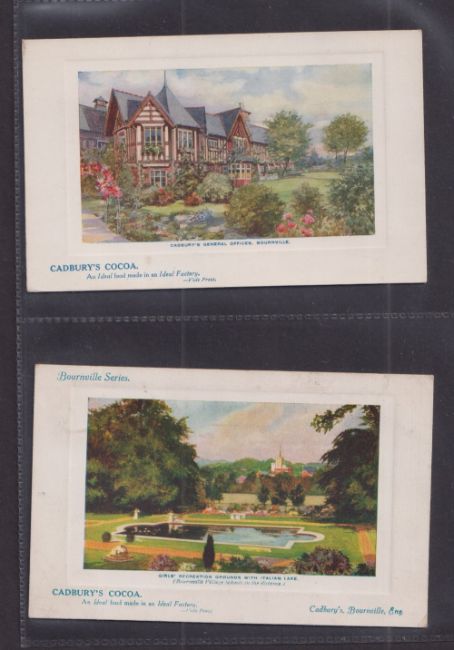 Trade Postcards, Cadbury's Bournville Series, 30 Postcards in 3 sets and a few odds. Trade Index Handbook reference HC3 (set 6 cards), reference HC4 (set 5 cards) HC8 (set 10 cards), plus 9 cards from various other series (gen gd