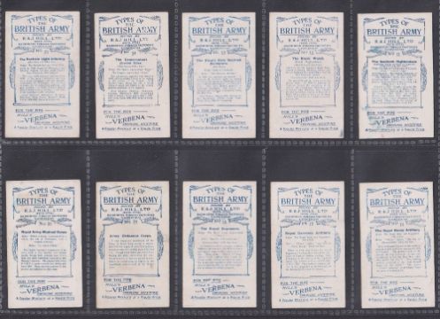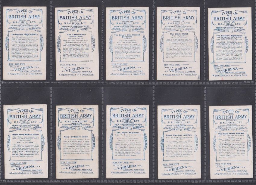 Cigarette cards, Hill's, Types of the British Army (Verbena) (set, 20 cards) (gen. gd)