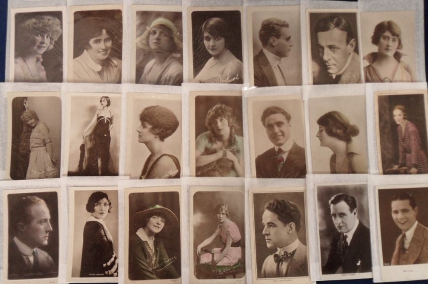 Postcards, Early Cinema, 200 cards to include Errol Flynn, William Russell, Mae Marsh, Gladys Cooper, George Walsh, Alla Nazimova, Matheson Lang, Alma Taylor, Clive Brook, Betty Balfour, Stewart Rome, Violet Hopson etc. Some cards are from 'Cinema Chat' (gd)