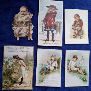 Trade cards, 20 early Advertising Chromo cards, mainly USA issues. Issuers include Merricks Spool Cotton, Muzzy's Starch, Hecker's Buckwheat, Helme's Rail Road Snuff, O & O Tea (gen fair a few gd, some with minor back damage / staining)