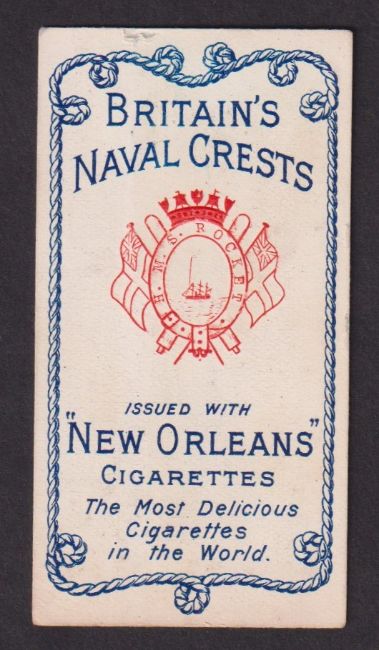Cigarette card, J & T Hodge, Britain's Naval Crests, type card, HMS Rocket (gd) (1)