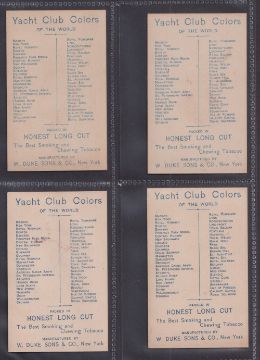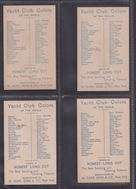 Cigarette cards, USA, Duke's, Yacht Colors of The World, 'X' size, 4 cards, Kate Vaughan American Canoe Association, Gracie Sherwood Paris Yacht Club, Theo, Royal Harwich Yacht Club & Myra Ward, Prospect Park Model Club (gd)