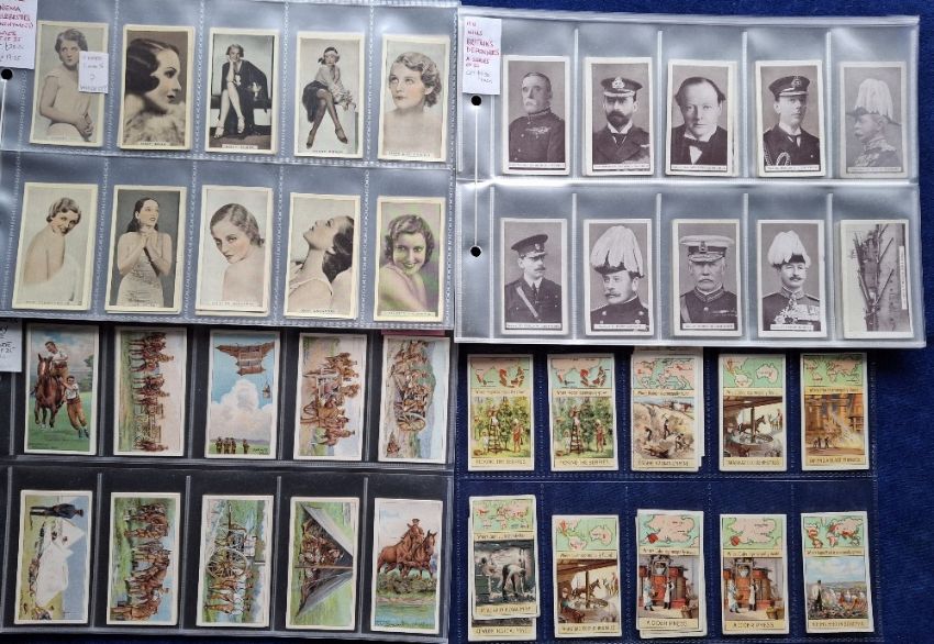 Cigarette cards, 150 cards, mainly Overseas Selection in part sets BAT Britain's Defenders (37 including Winston Churchill), Victoria Cross Heroes (9), R J Hill Anonymous Cinema Celebrities (30) BAT Plain back Products of the World (24), Beauties Picture Hats (20), Wills Scissors Governor Generals (7), Army Life (24)