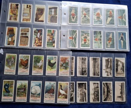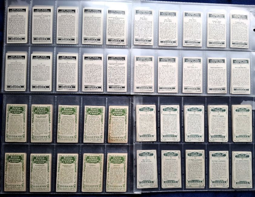 Cigarette cards, Ogden's 5 sets Swimming Diving & Lifesaving, Air Raid Precautions, British Birds (cut out version), Fowls Pigeons & Dogs (fair/gd), Sights of London (gen gd unless stated above)