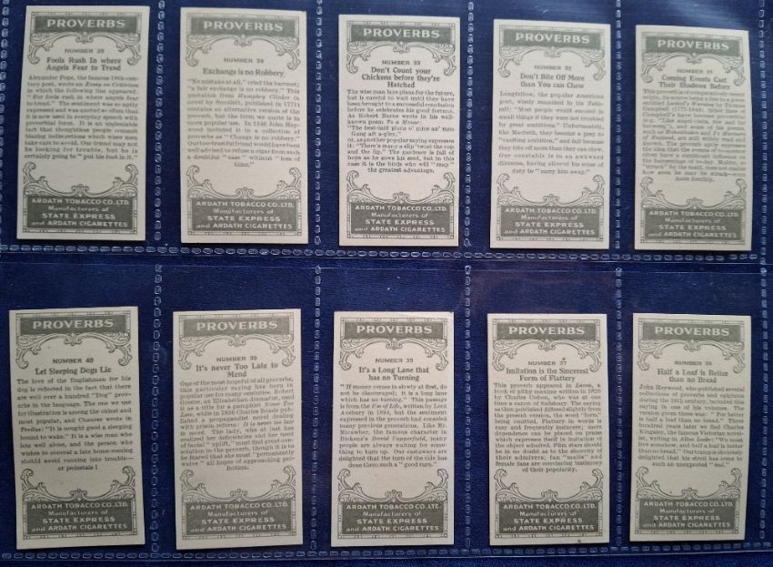 Cigarette cards, Ardath Proverbs (second series numbers 26 to 50) (gen vg)