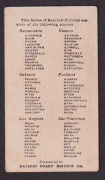 Trade card, USA, Pacific Coast Biscuit Co, Baseball Cards, type card, Cutshaw, Oakland (gd) (1)