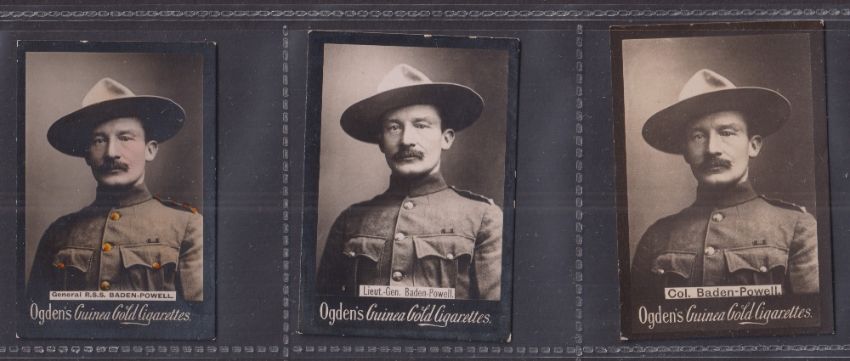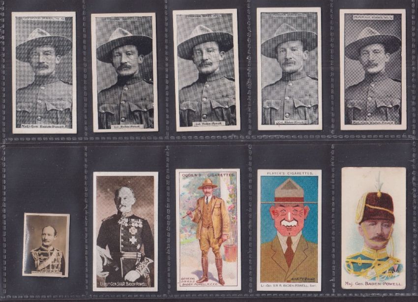Cigarette & Trade cards, 41 cards, all featuring R Baden Powell from various issuers including Wills Transvaal (5, different variations), Muratti, Cohen Weenen, Gallaher, ATC, Ogden's Tabs (9, different variations), Ogden's Guinea Gold (12, different variations including 1 large sized hand coloured example) (gen gd/vg a couple slightly lower)