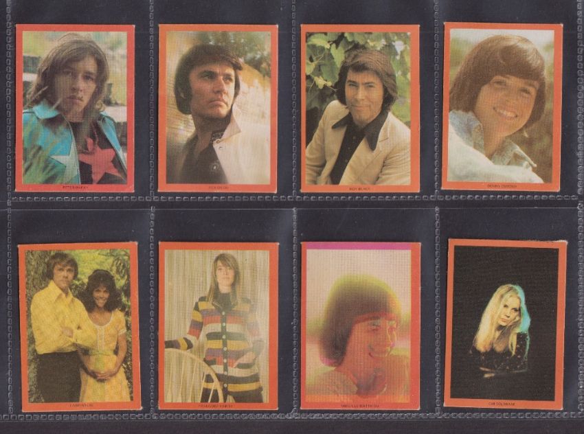 Trade cards, Monty Gum, Pop Series, Red Borders, 32 cards (plain back anonymous) including Johnny Cash, The Who, Stevie Wonder, James Brown, Frank Zappa etc (gd)