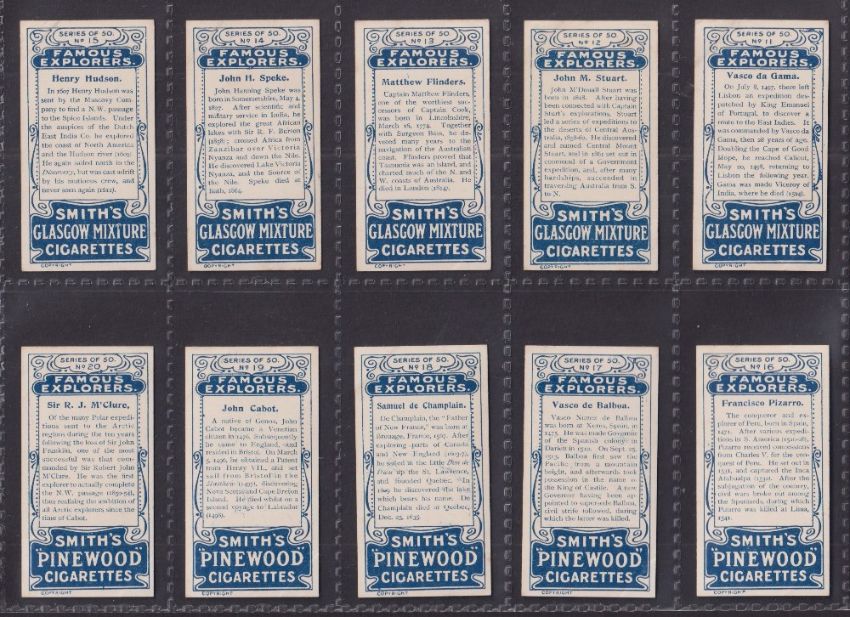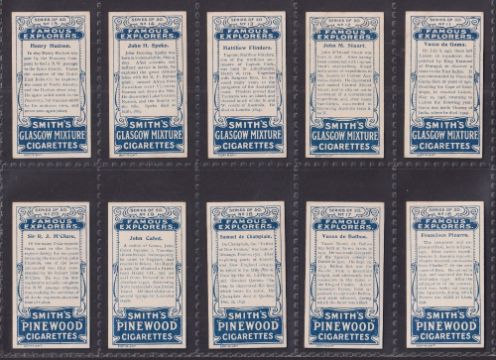 Cigarette cards, F & J Smith, Famous Explorers (set 50 cards) (couple cards very light foxing, gen gd/vg)