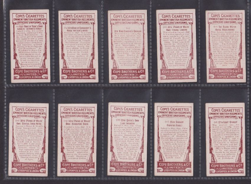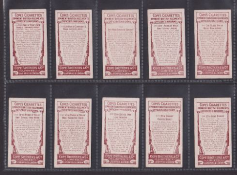 Cigarette cards, Cope's, Eminent British Regiments Officers Uniforms, all with Claret coloured backs (set 25 cards) (about / near gd)