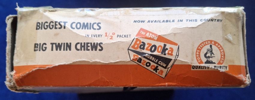 Trade cards, A&BC Gum, Test Cricketers 1961, Original Retail Box, with 60 Wax Wrappers with cards and Gum, in their original state of issue (wrappers in good order, not opened, retail box has some wear with some areas of tape repair along some edges and corners, but is in a presentable state)
