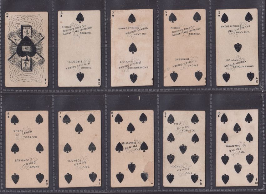 Cigarette cards, Canada, D. Ritchie & Co, Playing Cards (49/52, missing 2H, 4H &KC) (very mixed condition, mostly poor/fair, a few gd) (49)