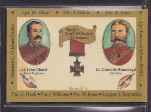 Trade cards, Military, 5 sets, Ritchie Accountants (2), Heroes of the Zulu Wars (25 cards), Zulu War series (10 standard size plus XL Rourke's Drift card), Victoria Gallery Caricatures of the British Army, set 1 and set 2, Chix Military Uniforms (50 cards) (gen gd/vg)