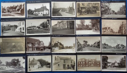 Postcards, Pubs, a selection of approx. 37 cards of UK pubs, all corner mounted, some with annotation. Mostly Simonds Brewery pubs. RPs include 'The Hinds Head' Aldermaston, 'The Ring O'Bells' Antony Cornwall, 'The Swan' Arborfield Cross, ' The Criterion' Banbury, 'McDonell Hotel' Bargoed, 'Red Lion' Basildon, 'Crown Inn' Basildon, 'The Bull' Arborfield Cross, 'The Four Points' Aldworth, 'Horse and Groom' Easthampstead. Also many good printed scenes of UK pubs (mixed condition)