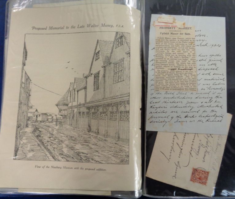 Ephemera, Berkshire, a collection of printed ephemera in 2 modern albums of Newbury and its environs, inc. billheads (1800s & 1900s), race cards for Newbury 1905, notes on Newbury District Field Club 1901, In Memorium, Soldiers and Sailors Memorial Church, 'Daily doings in Newbury' (pamphlet), receipts, race day train excursions, advertising pamphlets, By laws, various tickets, timetables, bus, rail, Donkey Derby etc. and much more. Sold with a notebook for postcard collection (mixed condition)