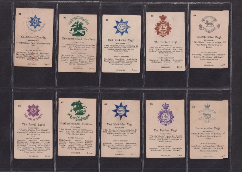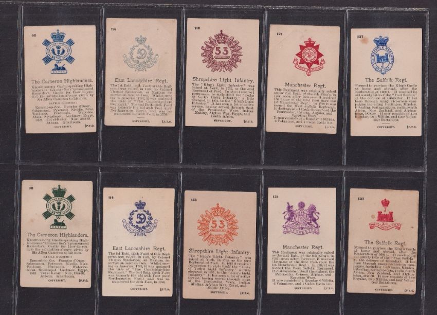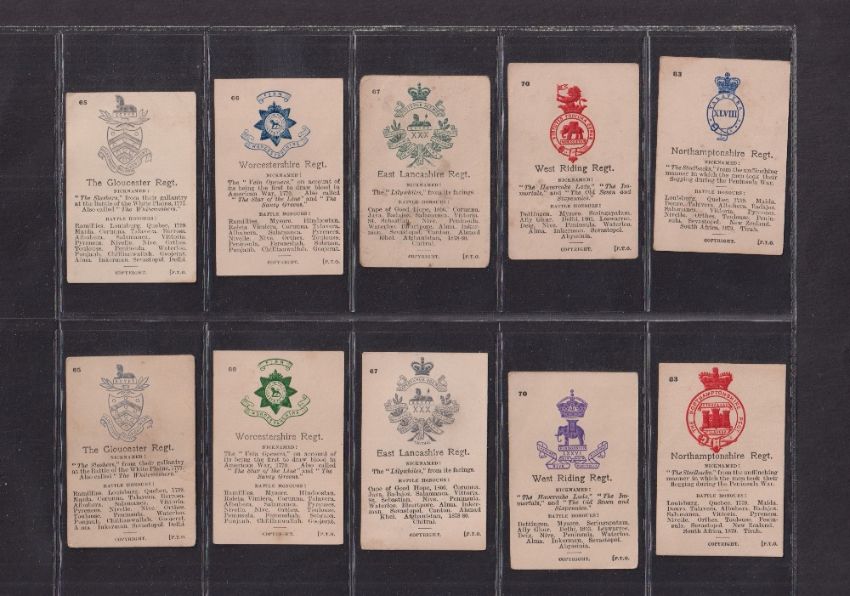 Cigarette cards, Ogden's, Army Crests & Mottos, a collection of 60 variation or error cards, some in pairs and some with notes detailing missing variations (a few with slight marks, gen. gd) (60)