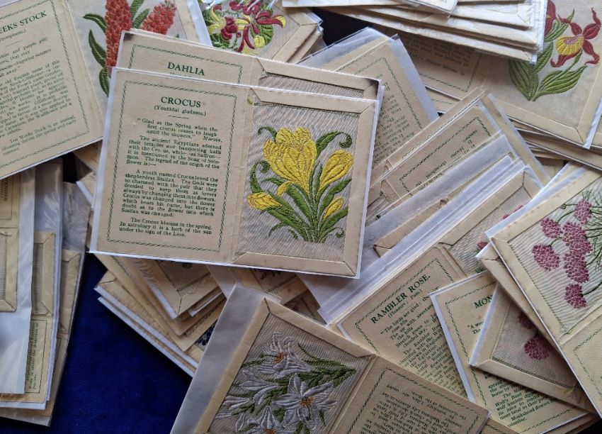 Tobacco silks, Kensitas Silk Flowers, Approx 170 silks, in original folders. Approx. 80 L size and 90 Standard size. Mixture of printed and plain back folders, some duplication noted, not checked for sets (some folders with wear, most about gd, silks generally gd)