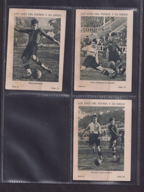 Trade cards, Spain, Juncosa Chocolates, Aces of Football, Serie A, 15 large size cards, numbered 1-15, several featuring Zamora (all with staining, fair) (15). From the Phil Martin Collection.