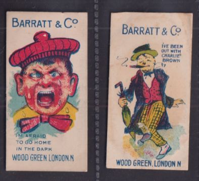 Trade cards, Barratt's, Double Meaning, two cards, 'I'm Afraid to Go Home in the Dark' & 'I've Been Out With Charlie Brown' (some slight marks, gen. gd) (2) Dutch & Egyptian (gd) (2)