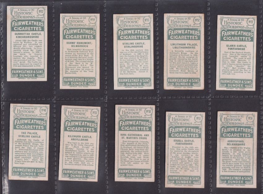 Cigarette cards, Fairweather & Sons, Historic Buildings of Scotland (49/50, missing no.20) (8 cards with foxing, rest gd/better)