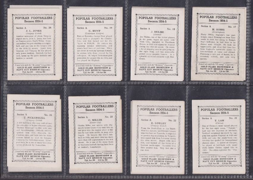 Cigarette cards, R J Hill, Popular Footballers 1934-35 Series A (set 30 cards) including Dixie Dean & Series B (set 20 cards numbers 31-50) including Stanley Matthews (4 cards from series B slightly grubby otherwise gd/ better)