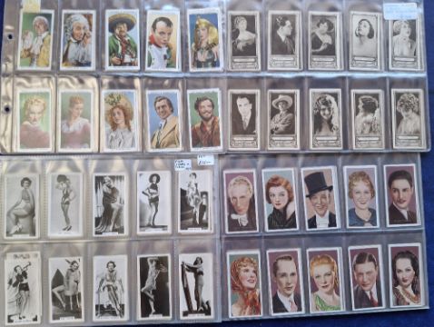 Cigarette cards, 36 sets including Godfrey Phillips (5, Stage & Cinema Beauties, Beauties of To Day XL etc), Ardath (2), Rothman Cinema Stars, Gerard, Millhoff (5 including Real Photos 1st to 4th), Westminster, Mitchell Stars of Screen, ERB Cinema Stars std size, Carreras (8, including Film Stars A, Film & Stage Beauties, Film Stars Desmond etc), Players (11 including Kings & Queens Large and Standard size, Army Life etc) (mixed condition gen fair/vg, but majority good or better, some series better than others)