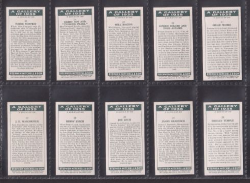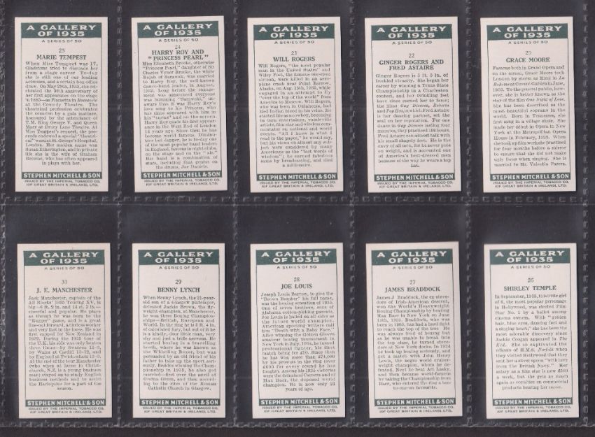 Cigarette cards, Mitchell, A Gallery of 1935 (set 50 cards) including Walt Disney, Joe Louis etc (vg)