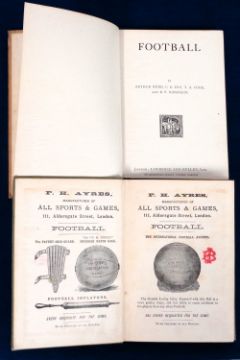 Football books, 2 early hard-back Football books 'Association Football' by C W Alcock 1890 from the All England Series (80 pages) sold with 'Football' by A Budd, C B Fry, T A Cook & B F Robinson (re-printed edition) (both with some sl marks, gen gd). From the Phil Martin Collection.
