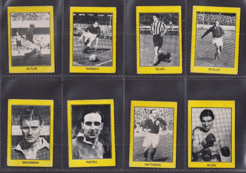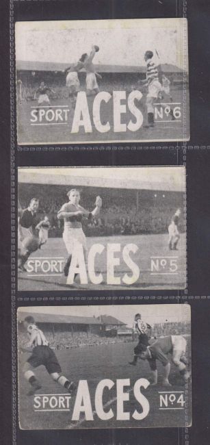Trade cards, MM Frame, Sport Aces Yellow Borders 32/48 including Henry Cotton, Billy Wright, Stan Matthews etc, plus 3 XL sized Sport Aces cards picture backs with Football Team on the front (fair/gd)