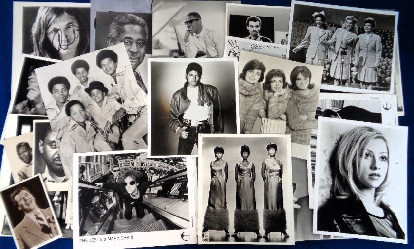 Music & entertainment, a collection of approx 150 promotional photo's and prints, various ages, inc. Jackson 5, Supremes, Paul Young, Stevie Wonder, Alvin Stardust, Scritti Politti, Ramsey Lewis, Johnny Ray, The Rag Dolls, various 1990's Indie Bands etc many with press stamps and details to reverse (gen gd)