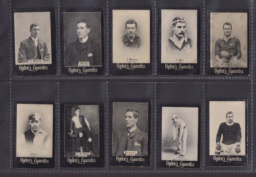 Cigarette cards, Football, Ogden's Tab type item 95C Footballers, 42 cards including G O Smith, Raisbeck etc (mostly gd, a few backs slightly grubby and some cards have been lightly inked in on the edges, including the G O Smith card)