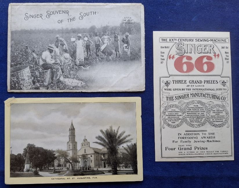 Trade cards, Singer Sewing Machines, quantity of Singer Souvenir Cabinet Size View cards, mainly USA views. Some series have original envelopes, approx. 150 cards, including Washington, Philadelphia, The South, Chicago, Great Lakes, various Mission Chapels (10) etc (envelopes gen fair, cards gen gd)