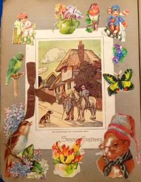 Scraps and Greetings Cards, a selection of good greetings cards and scraps to include many anthropomorphic, many Valentines, military, Naval, insects, fish, animals, fire brigade, poultry etc. Most laid down in albums, many loose (albums gen poor, scraps and cards gen gd)