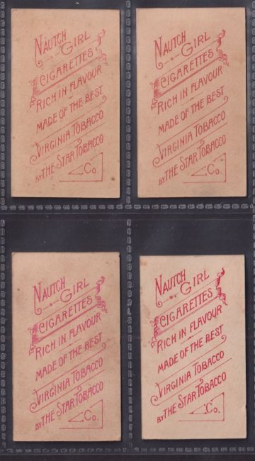 Cigarette cards, India, Star Tobacco Co, Beauties, sepia, 'Nautch Girl' back in red, 4 cards (some slight marks, gen. gd) (4)