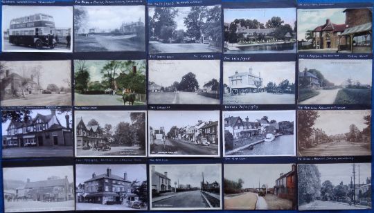 Postcards, Pubs, a selection of approx. 45 cards of UK public houses, mostly Simonds Ales etc. Cards corner mounted with some annotated. RPs include 'Hare and Hounds' Speen Newbury, 'George and Dragon' Swallowfield (Collier), 'The Bull' Stanford - Dingley, 'The Cricketers Inn' Stockcross, 'White Hart Hotel' Sonning (Collier), 'The Black Boy' Shinfield (Collier), 'White Hart' Sherfield-on-Loddon, 'Shipwrights Arms' Salcombe. Also good printed cards of UK pubs (mainly gd)