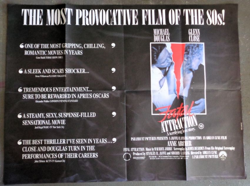 Cinema, Posters, 7 vintage folded quad posters to comprise Fatal Attraction, Terminator 3, The Dark Knight Rises, Last Tango in Paris with Everything You Wanted To Know About Sex, The Witches of Eastwick, Batman Forever, The Adams Family (mixed condition)